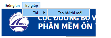 - Để tạo một đề thi thử khác bạn làm như sau: Bạn chọn Trợ giúp > Thi > Tạo bài thi mới