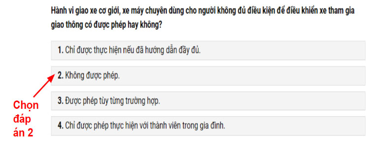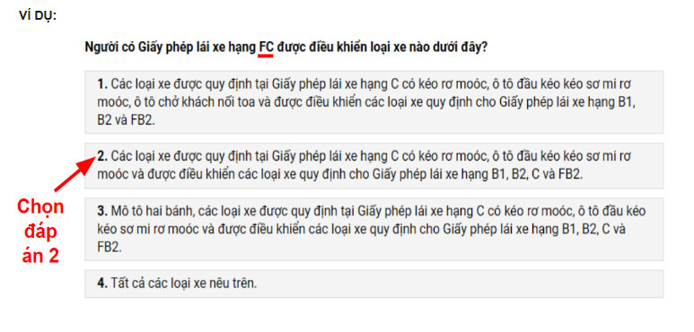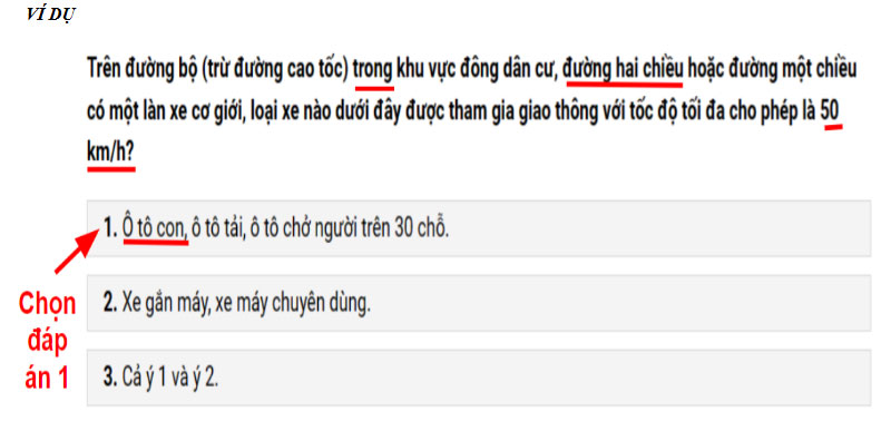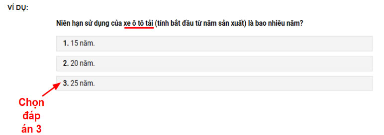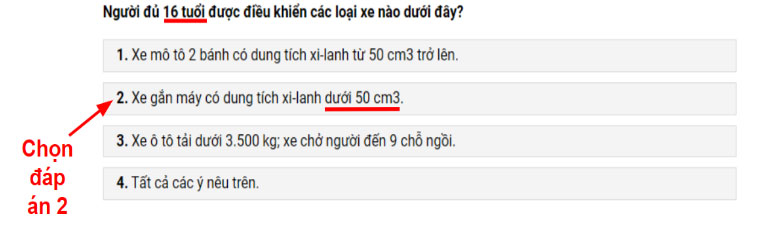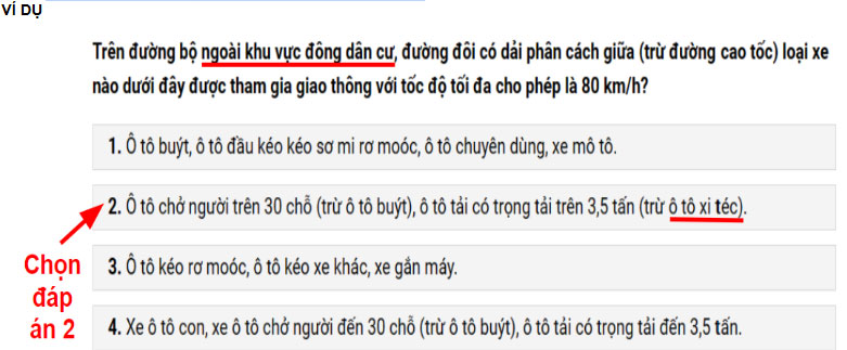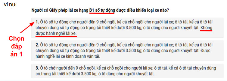 → chọn đáp án 1 có Ô TÔ CON (ở đầu câu)