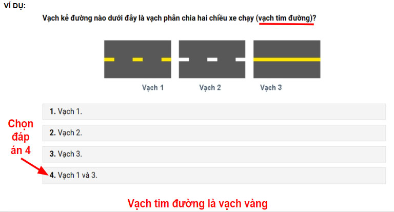 - Hỏi vạch tim đường→ chọn vạch vàng