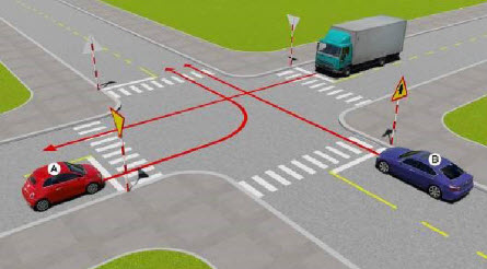 Nguyên tắc 4: Xe nào bên phải không bị vướng (ngã tư) được đi trước.