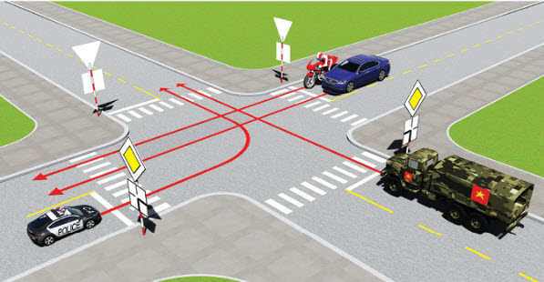 Nguyên tắc 3: Xe đi trên đường ưu tiên (biển báo ưu tiên) được đi trước